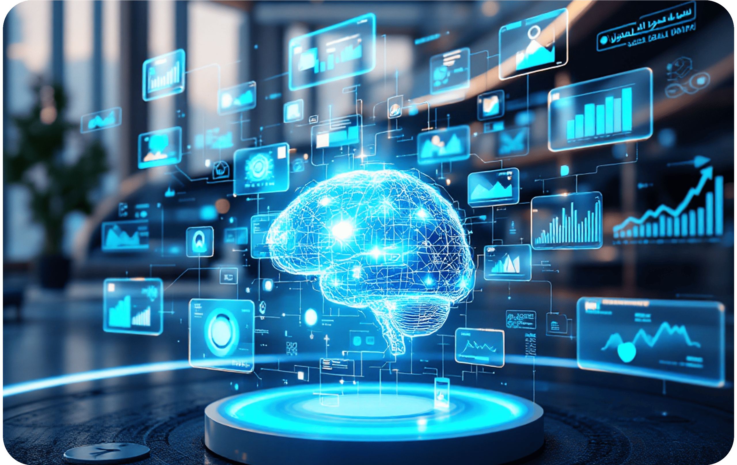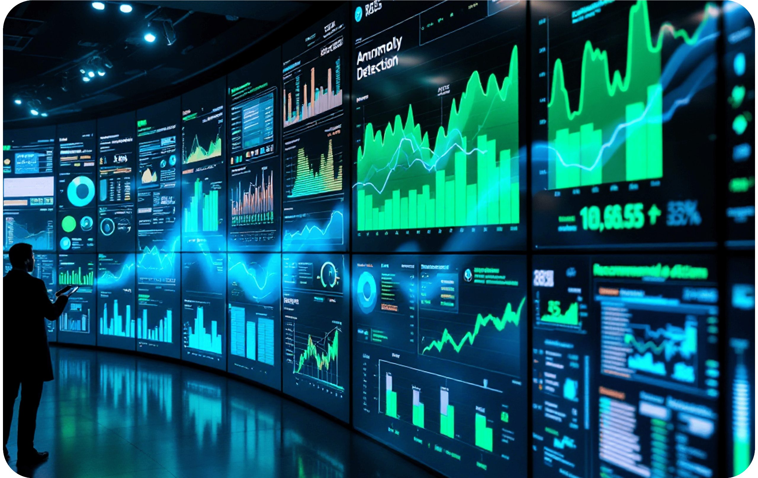 من خلال توظيف تقنيات الذكاء الاصطناعي وتعلّم الآلة (AI/ML)، نساعد المؤسسات على توقّع الاتجاهات المحتملة، واكتشاف الانحرافات، والتوصية بالإجراءات المثلى لتحويل البيانات إلى نتائج عملية تدعم اتخاذ القرار وتعزّز الأداء المؤسسي.