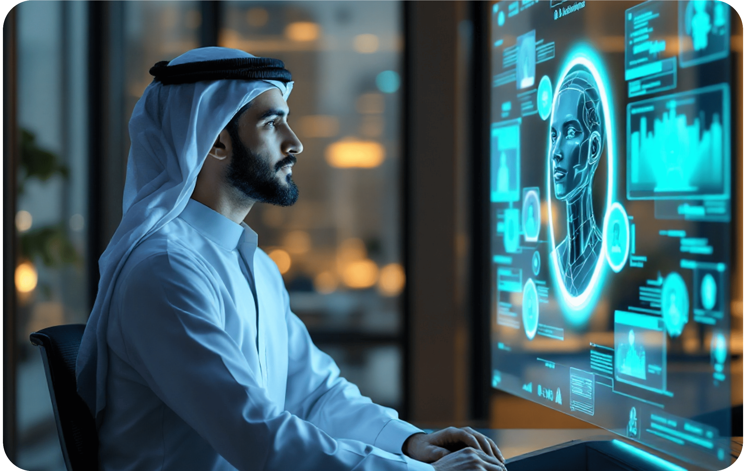 نطوّر ونطبّق حلول الذكاء الاصطناعي التوليدي (GenAI) مثل المحادثات الذكية (Chatbots) والمساعدين الرقميين والنماذج التعاونية (Copilots) و الافاتار التفاعلي (Avatars)، بهدف تعزيز تجربة المستخدم، وإدارة المعرفة، ورفع كفاءة الإنتاجية.